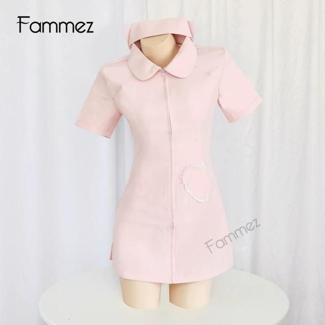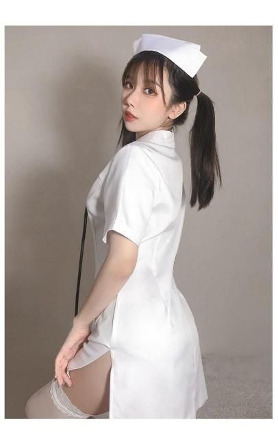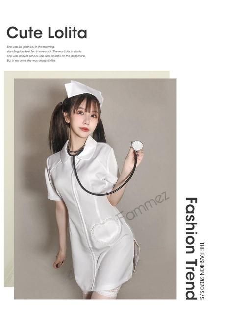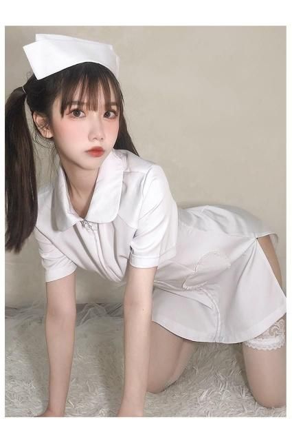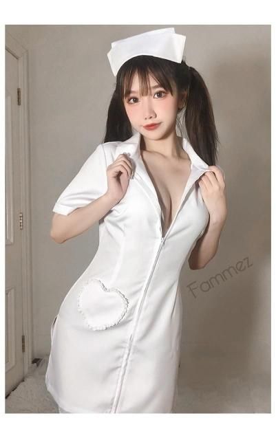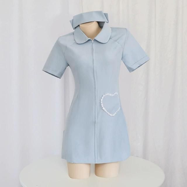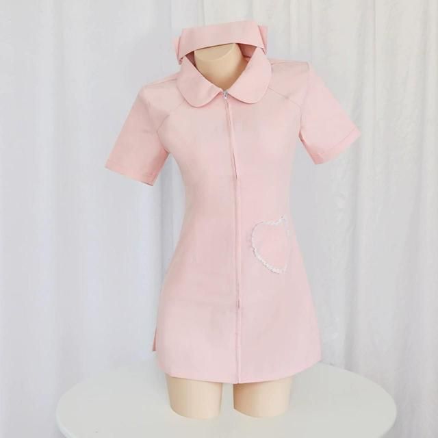 ナース服 ナース帽/ワンピース コスチューム ホワイト ピンク ライトブルー 衣装 看護婦 白衣 サイドスリット ハートポケット 可愛い プレゼント cosplay