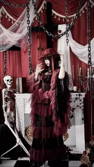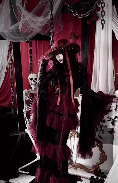 深紅のゴシックドレスコートドレス、オリジナルドレス、ふくらみのあるドレス、、ビーズドレス、ダークドレスコスプレ 衣装 通販 オーダーメイド